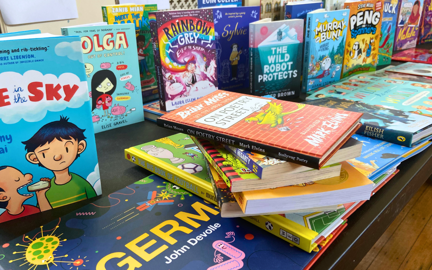 The Children's Books Ireland team arranged an eye-catching display of all the brand new books being gifted to the school's library. The selection included a stunning assortment of over 200 books from various artists and illustrators.