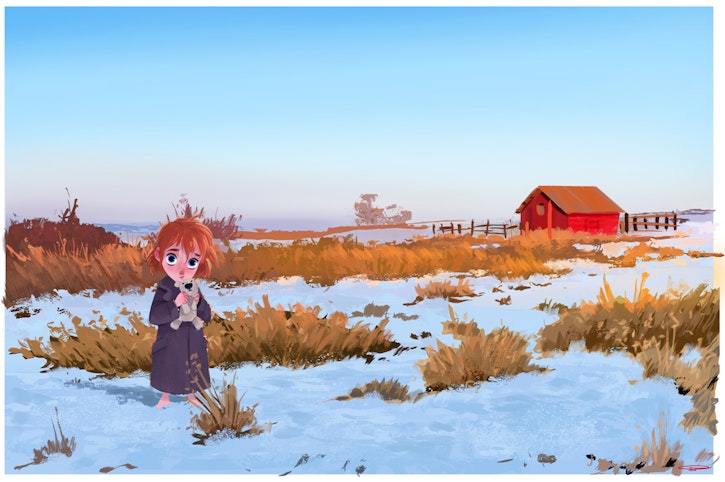 I started with a photograph of an environment and did a 30-minute copy. I then added the little girl into the foreground.