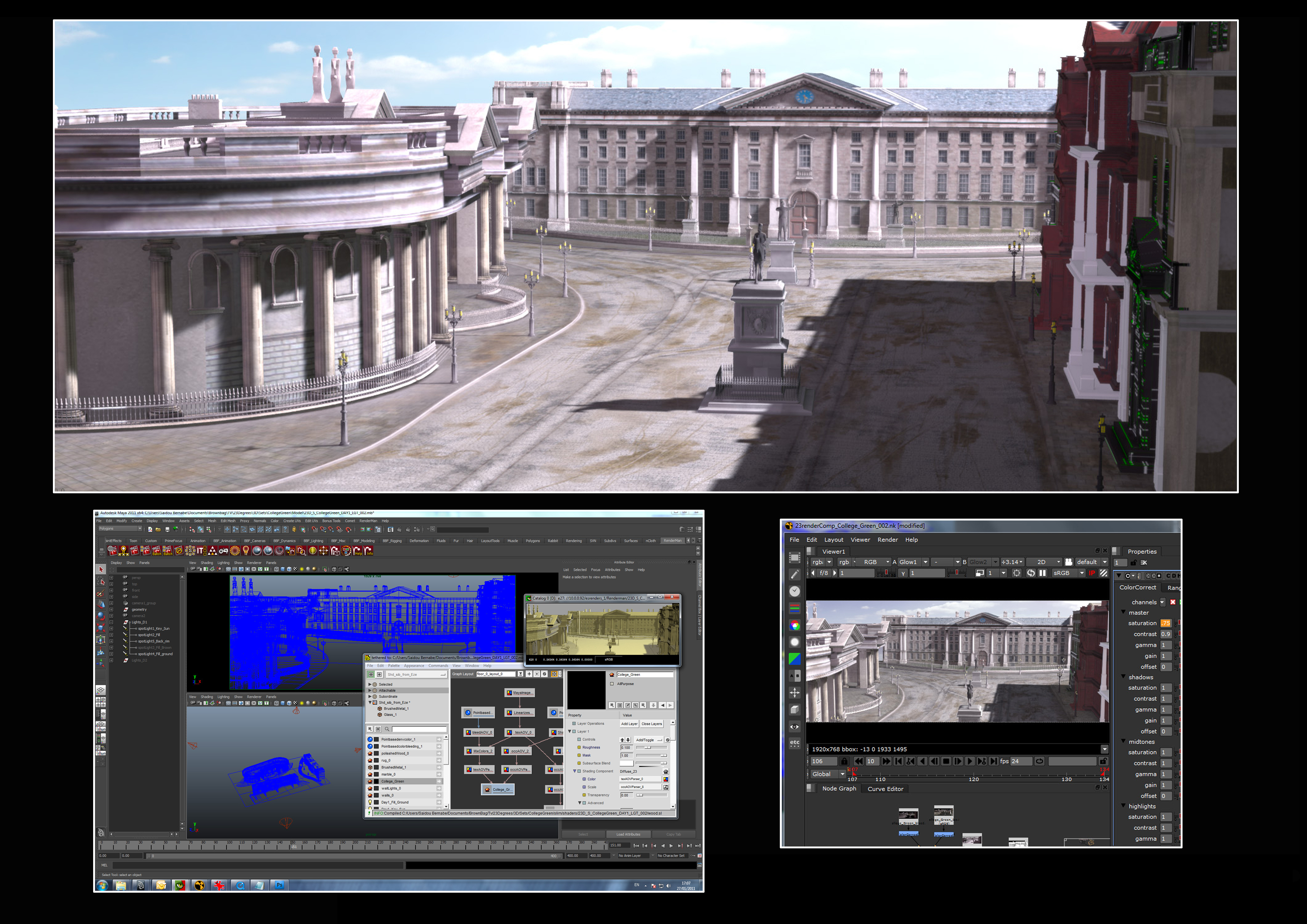 Textures by Stephen O’Connor, Shaders by Ezequiel Mastrasso, Lighting by Saidou Bernabe. All based on colour keys from Stephen Robinson. Character rigs created by Fabio Bonvicini. We can honestly say this is turning into an international production!