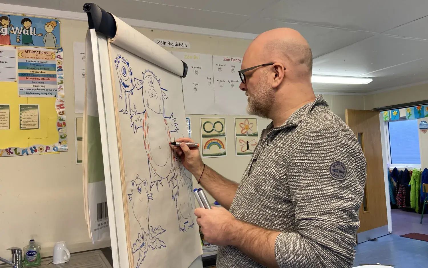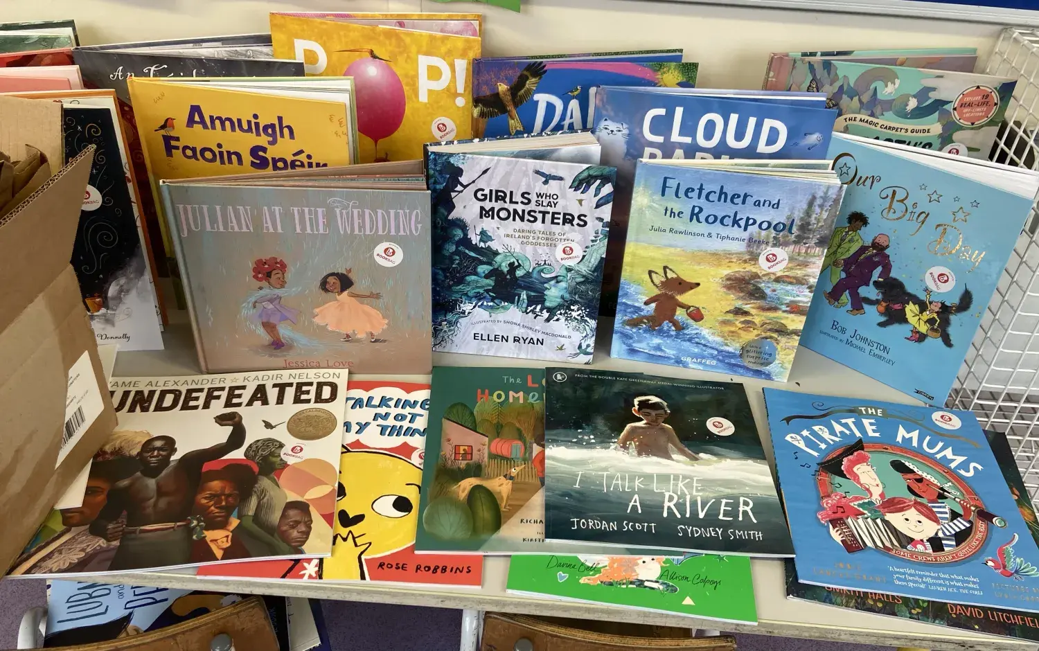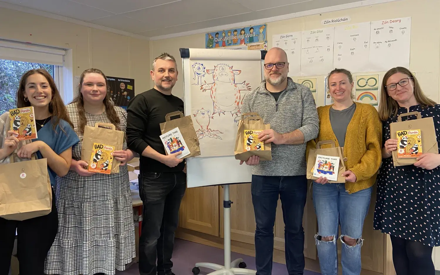Following the Monster Doodle, each student was then gifted a Bookbag with bookmarks, a Picture This reading guide, and a book for them to keep and bring home. The selected books were a mix of books in the Irish language (as Gaeilge), and illustrated books.