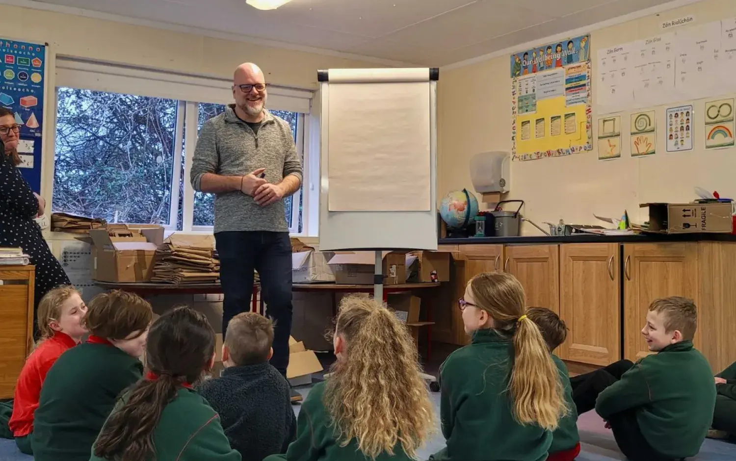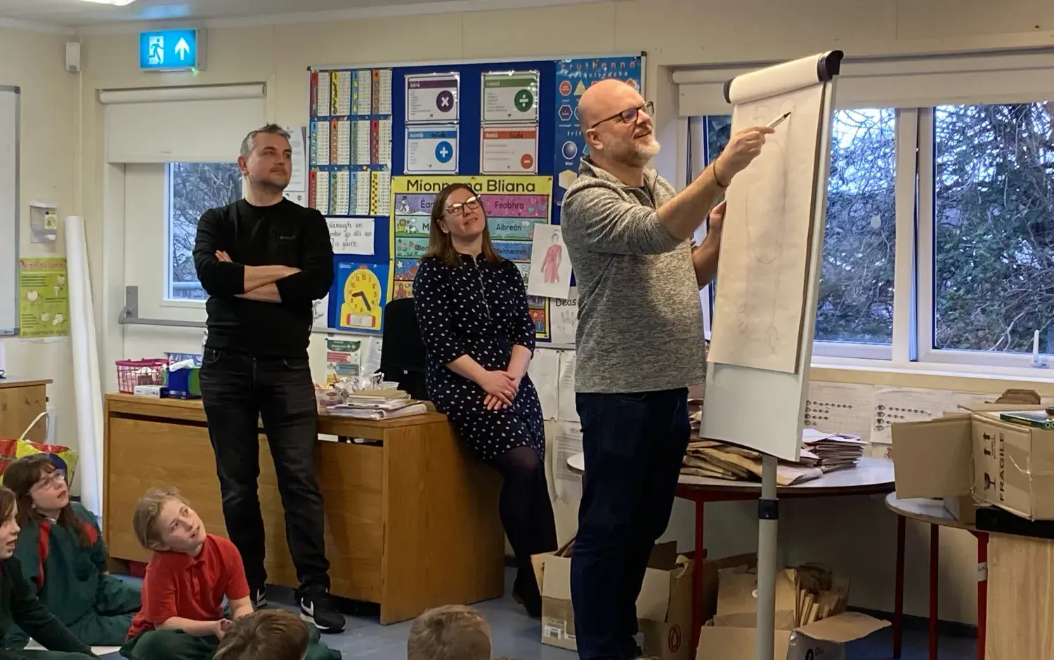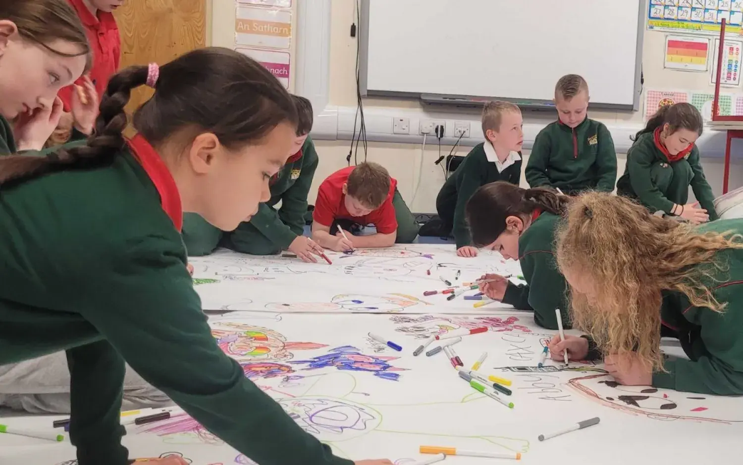 The following day, the school was treated to a visit from Children’s book illustrators and authors Tarsila Krüse and Anna Heussaff, who delivered workshops with the children in their classrooms. Author Sadhbh Devlin will visit the pupils next month, after the Easter break. These artists was selected to work with the school due to their experience hosting activities as Gaeilge, ensuring the delivery of excellent workshops that support the ethos of the Gaelscoil.