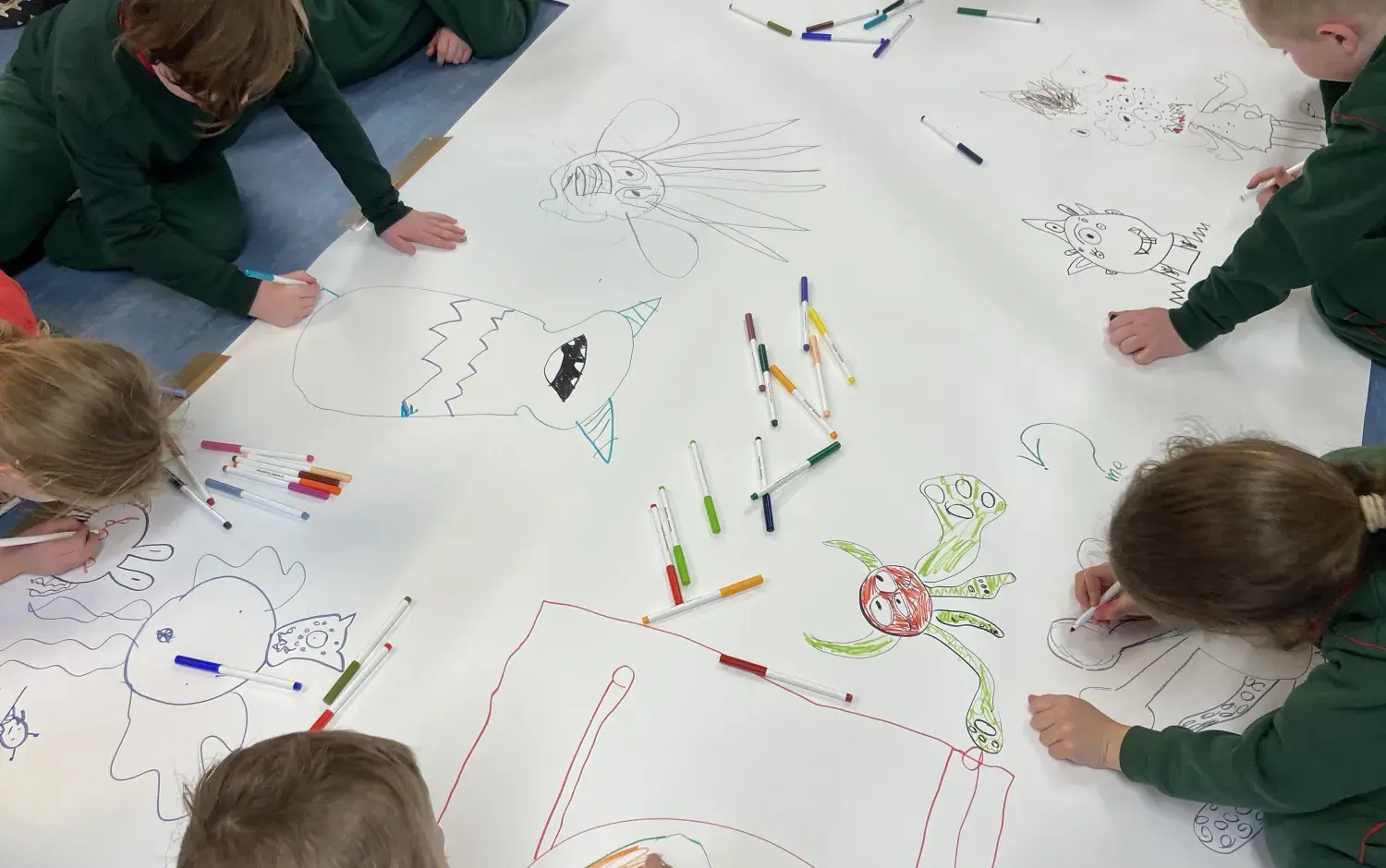 Our team thoroughly enjoyed the experience of encouraging the students with their drawings during the epic Monster Doodle session and were bowled over by the creativity and imagination showcased by the students! The Monster Doodle masterpiece featured monsters of all shapes and sizes, complete with names and brilliant backstories.