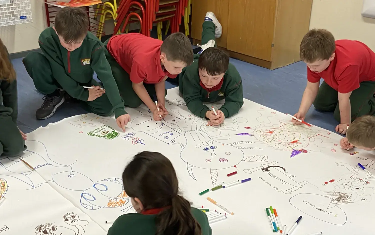 Our Dublin studio Bookbag committee and the CBI team then prepared the room for the Monster Doodle session which was led by our Emmy-Award winning Episodic Director Mårten Jönmark for the 2nd and 3rd class students, who proceeded to create some absolutely spectacular artwork, under the guidance and support from our team.