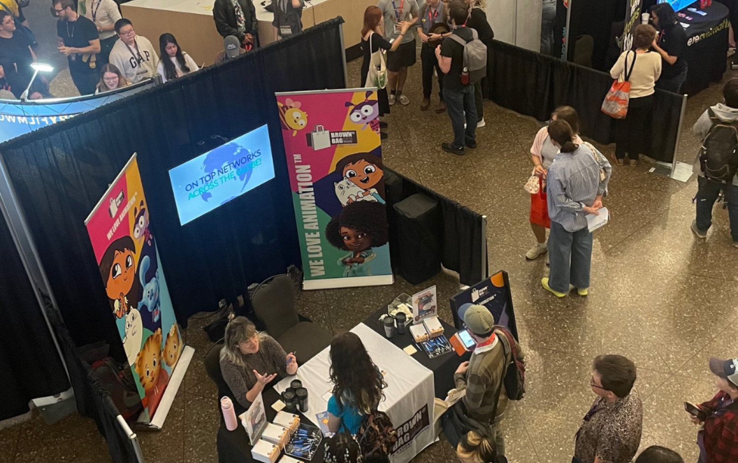 Finally, our Brown Bag Films recruitment experts and key members of our Production Leadership Team were on site at the Animation Exposé held in the National Arts Centre, on Saturday, September 23. Presented by OIAF, the Exposé, is a one-day series of events curated to enhance festival-goers experience and understanding of the world of animation. While some programming is geared toward the animation industry, the Artist Talks, recruiting opportunities, and sketching activities are all interesting to anyone looking to learn what’s new in animation, meet inspiring creators, find a way to study animation, or even connect with their dream job at a leading studio. Our recruitment specialists were on hand at the event to share tips and feedback on portfolios, and share with Exposé goes more about life at Brown Bag Films, and of course pass out some awesome BBF swag. Our entire team would like to extend a big thank you to the event organizers and all the talented individuals who took the time to visit our booth at this year’s Animation Exposé. We were thrilled to have the opportunity to engage with our vibrant and creative community and were impressed by the diverse range of skills and passion for animation that everyone brought to our interactions.