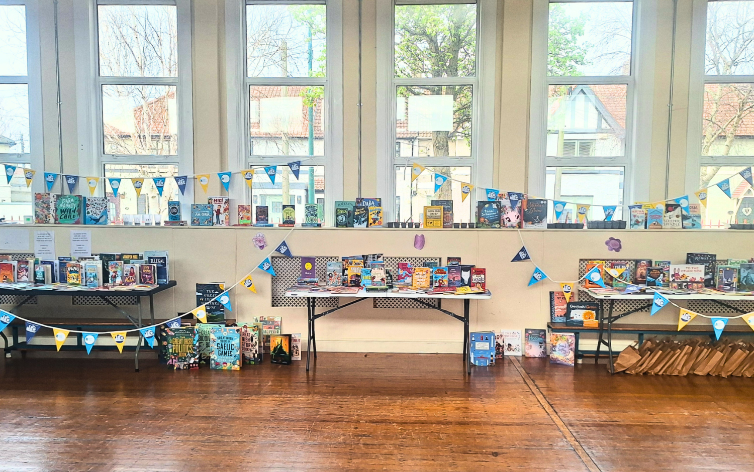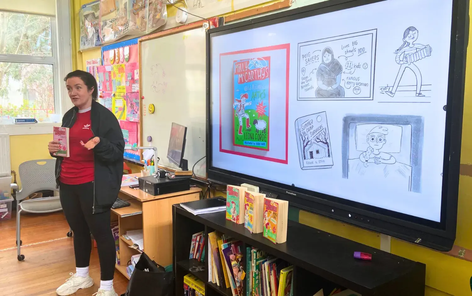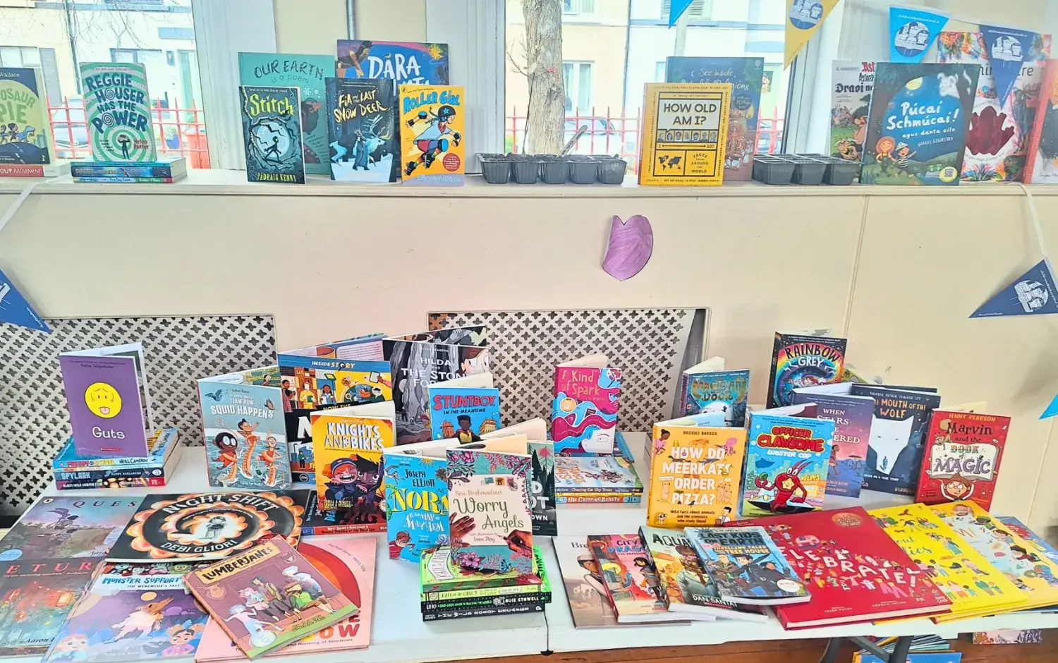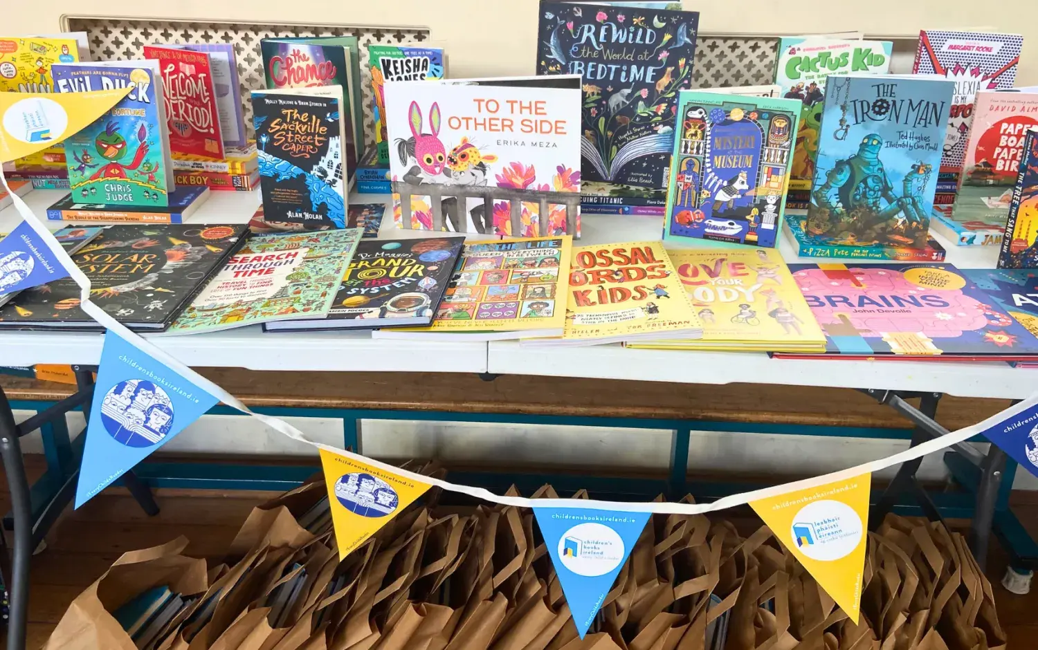 The Children's Books Ireland team arranged an eye-catching display of all the brand new books being gifted to the school's library. The selection included a stunning assortment of over 200 books from various artists and illustrators.