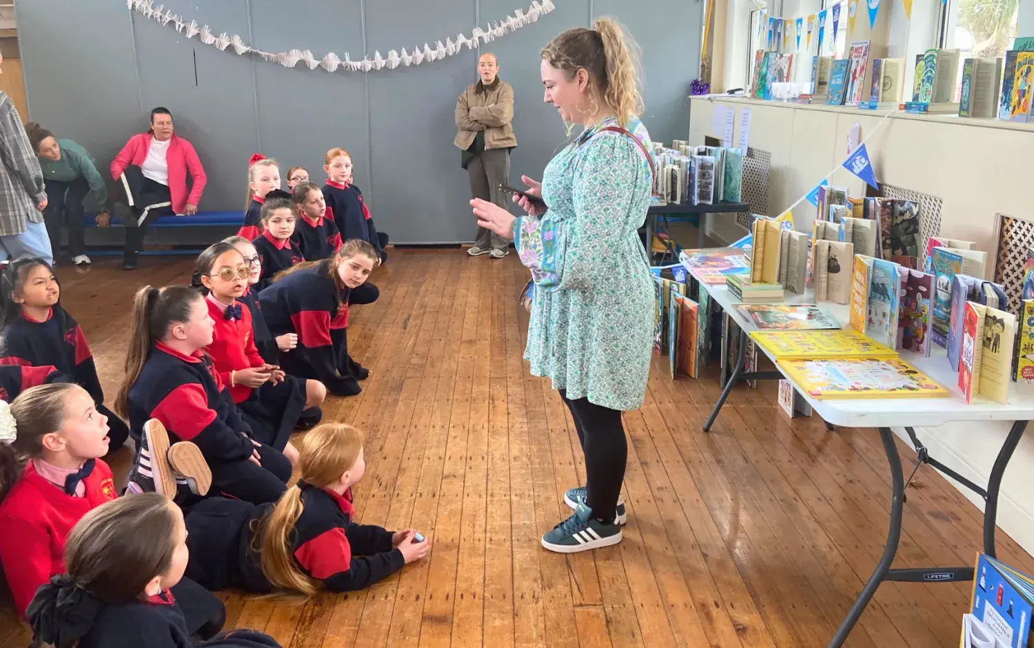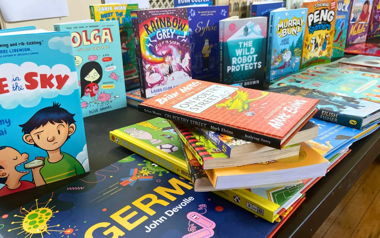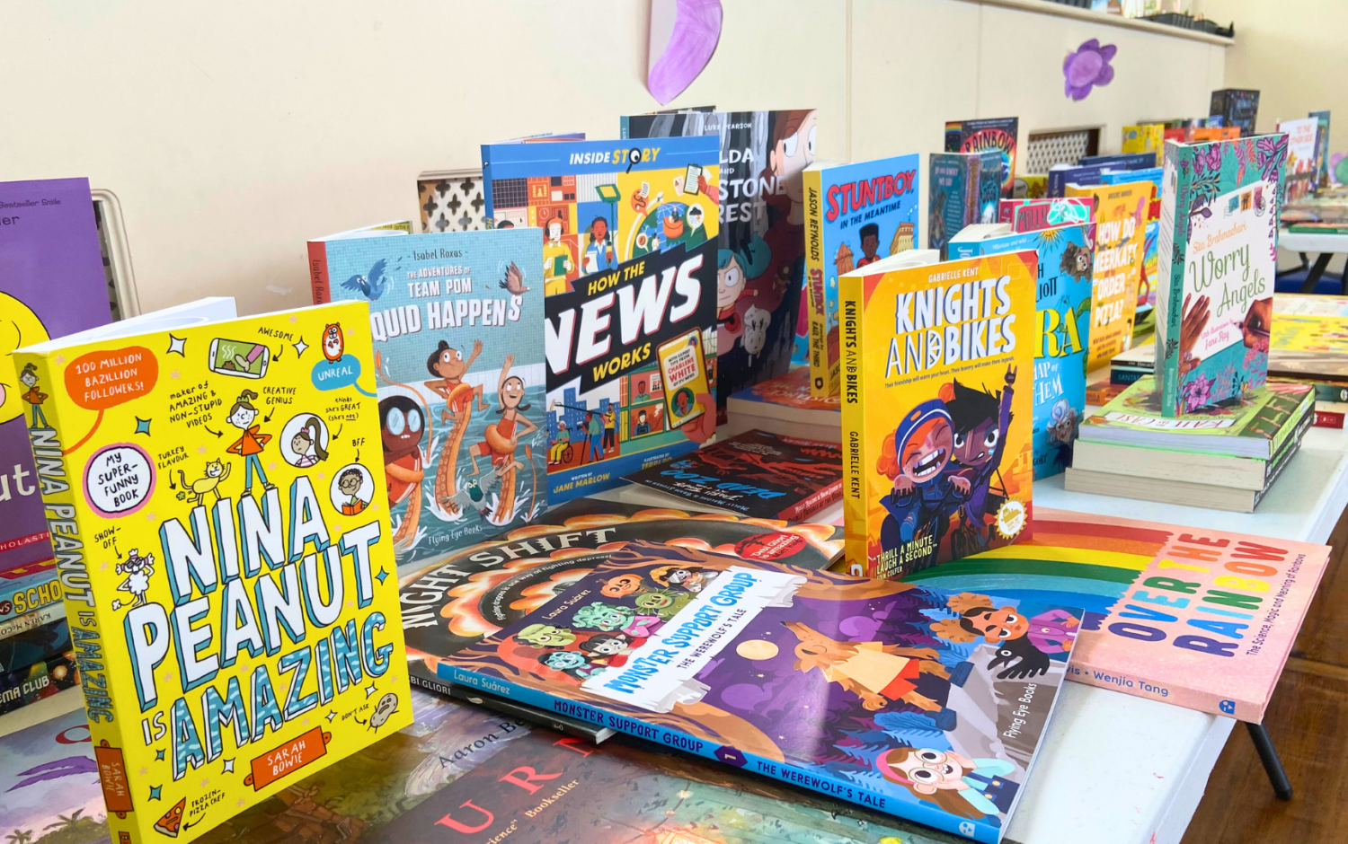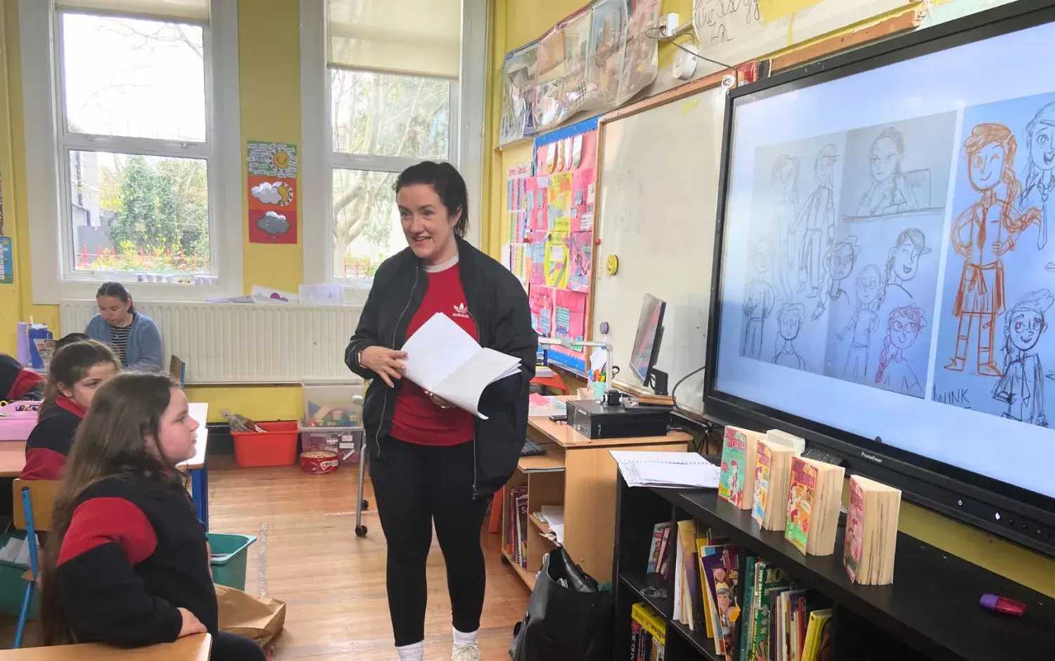 The Children's Books Ireland team arranged an eye-catching display of all the brand new books being gifted to the school's library. The selection included a stunning assortment of over 200 books from various artists and illustrators.