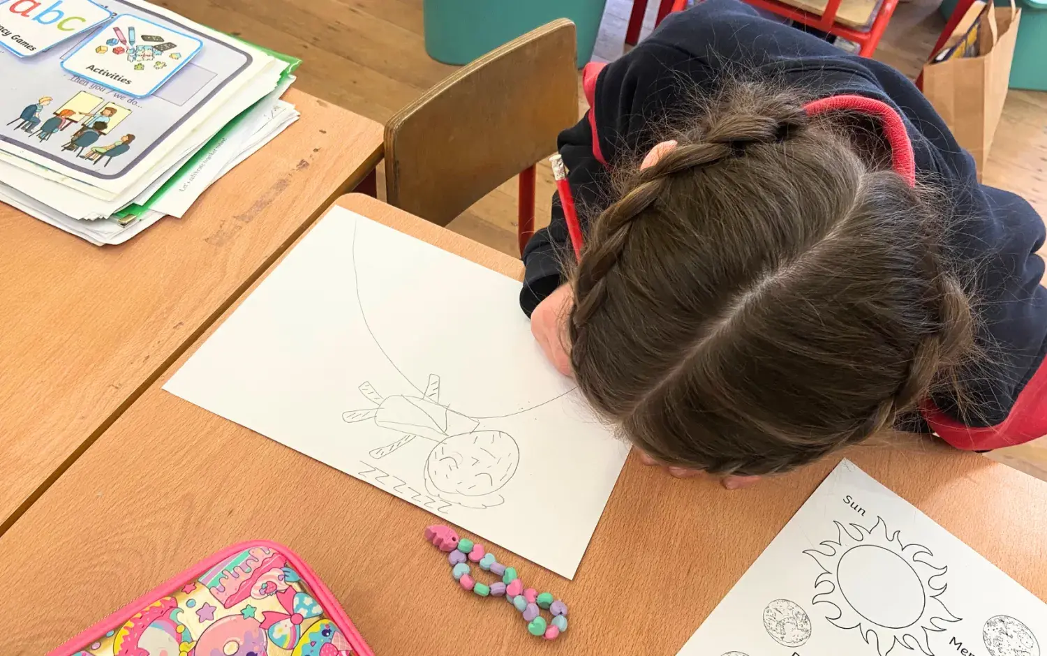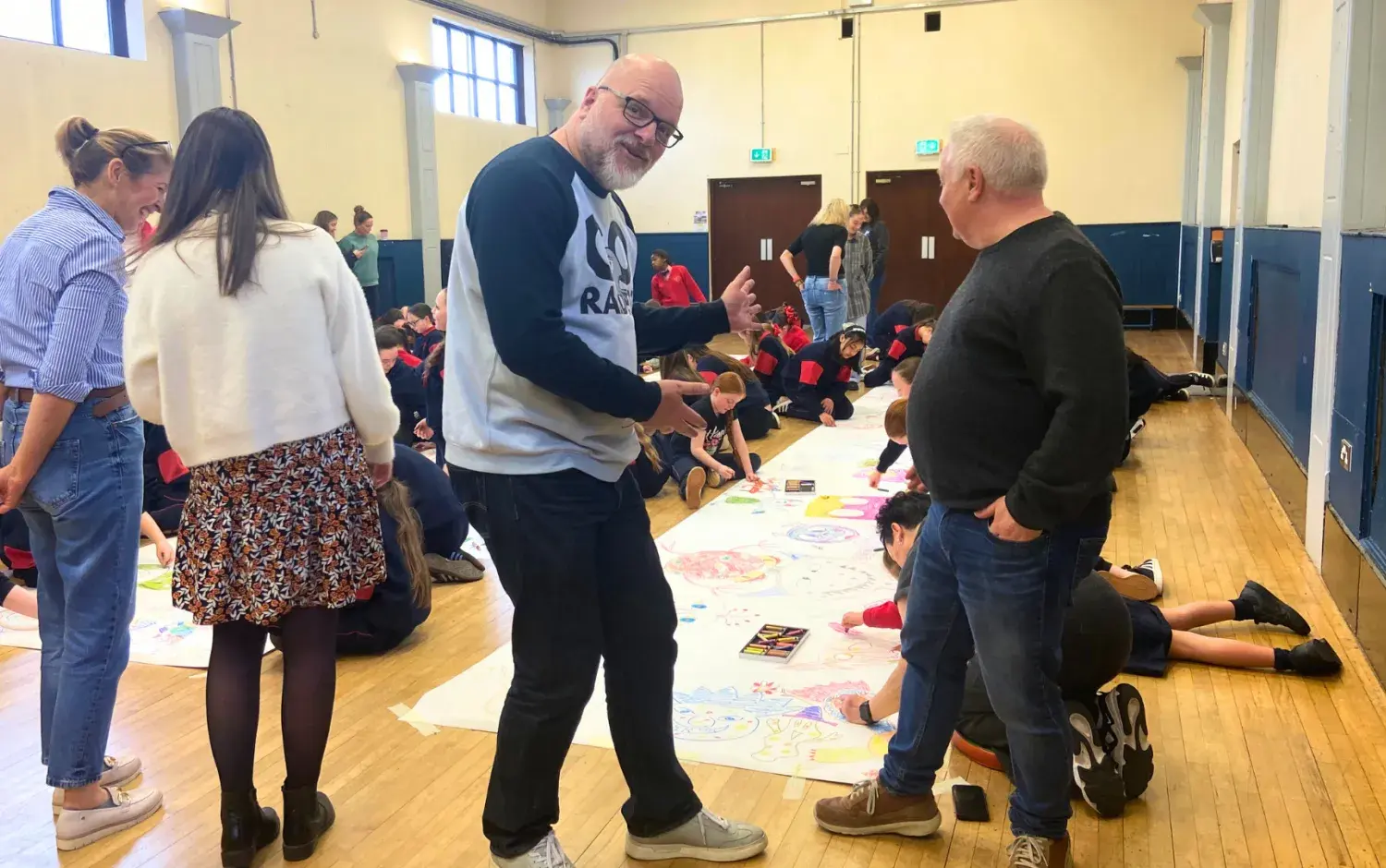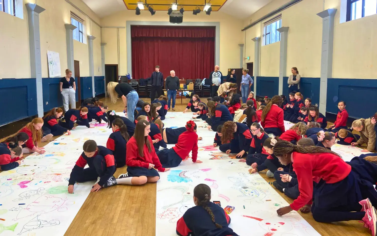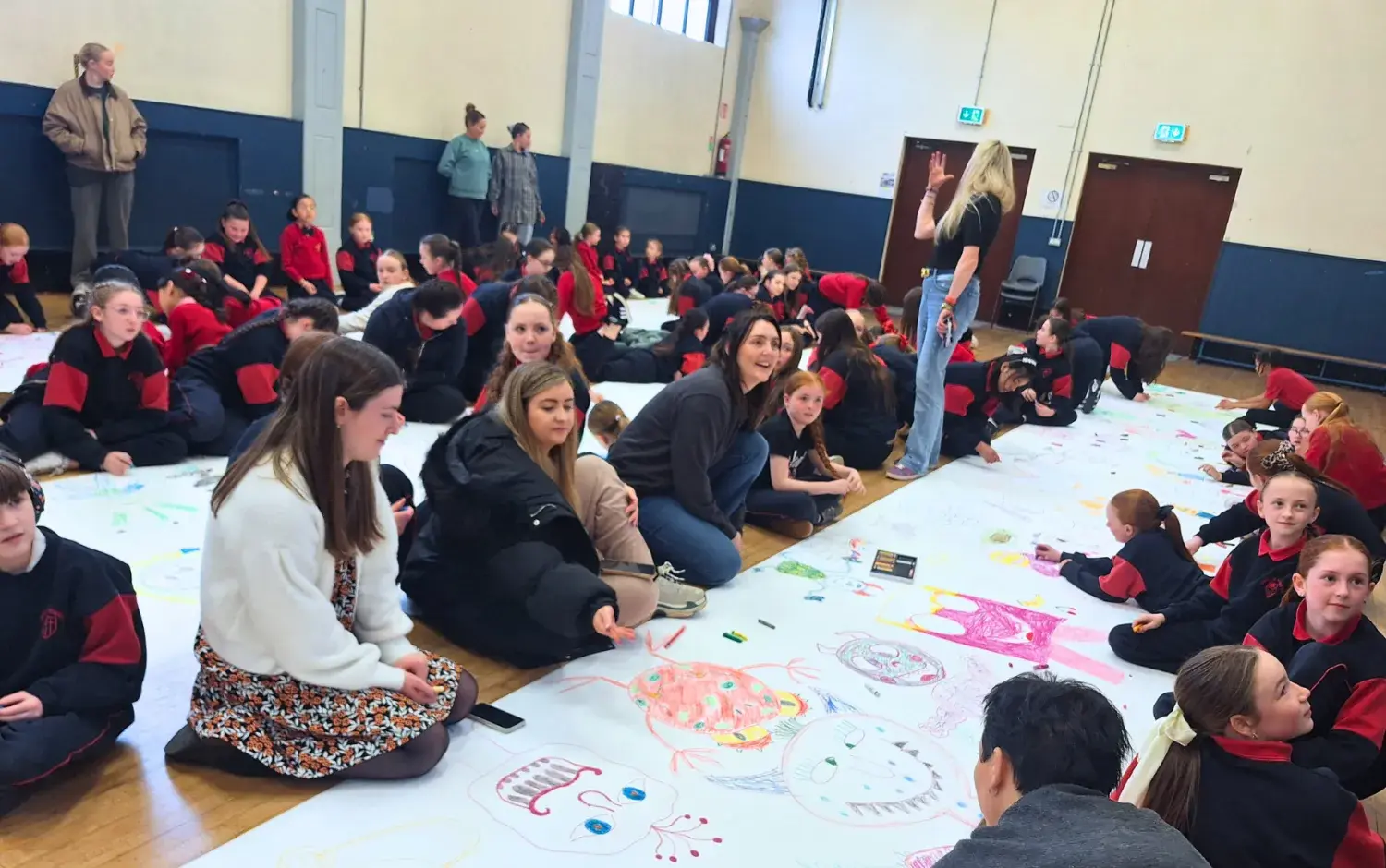 The students were then welcomed into the school hall to take part in a Monster Doodle activity which was led by our Emmy-Award winning Episodic Director Mårten Jönmark (Peter Rabbit, Octonauts). To kick things off, Mårten provided a quick tutorial with some key pointers for designing a monster, and then the students scooped up some pastels to get started.